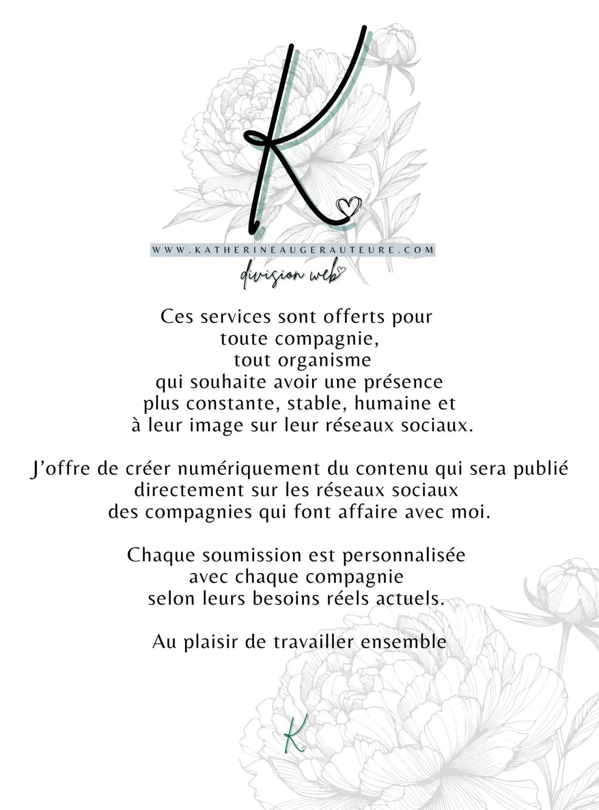 Copyrights 2025 | Katherine Auger Auteure | Termes & Conditions | Politique de Confidentialité | Propulsé par NAVA Solutions