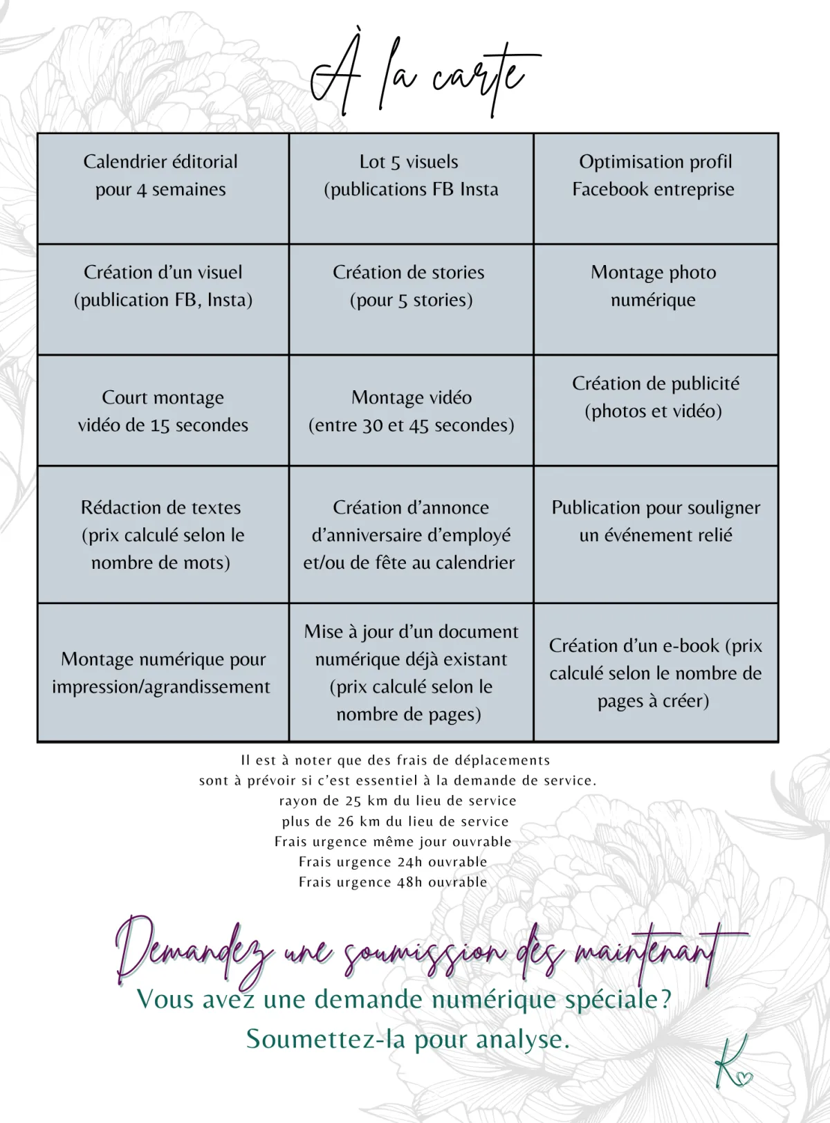 © Katherine Auger, 2022 Tous droits réservés. Aucune partie de cette œuvre ne peut être reproduite, enregistrée dans un système de récupération ou transmise, sous quelque forme ou par quelque moyen que ce soit : électronique, mécanique, photocopie, enregistrement ou autre, sans l’autorisation écrite préalable de l’auteure, à l’exception de courtes citations utilisées à des fins de critique ou de compte rendu, conformément à la législation sur le droit d’auteur. Cette œuvre est protégée par les lois canadiennes et internationales sur le droit d’auteur. Toute utilisation non autorisée constitue une violation de ces lois et pourra faire l’objet de poursuites judiciaires.